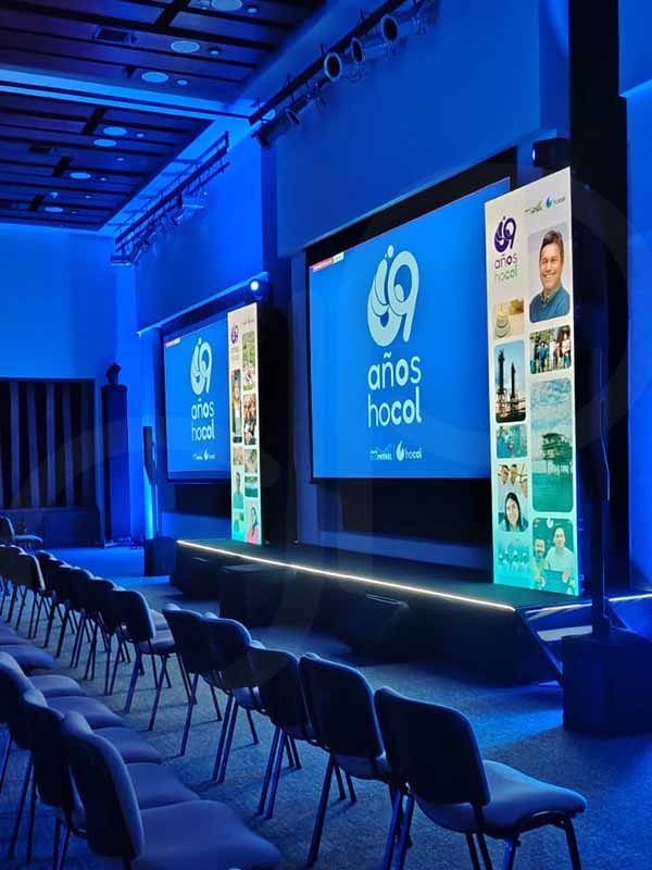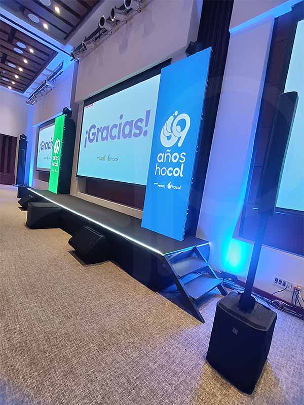 Diseño, producción, montaje y desmontaje de Evento, técnica audiovisual, Pantallas LED, sistema de audio PA, iluminación beams, PAR LED, tarima, streaming a 2 cámaras, punto fijo de video y backing de fotografía, Bogotá- Colombia